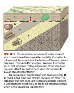 Deposition of unit A deposition of unit D emplacement of unit G see question 39 cannot tell from the information given. Also called the Age of Dinosaurs.